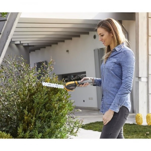 Cesoia alimentata da batteria al litio, ideale per la cura del prato, rifinitura aiuole, piccole siepi e cespugli ornamentali.